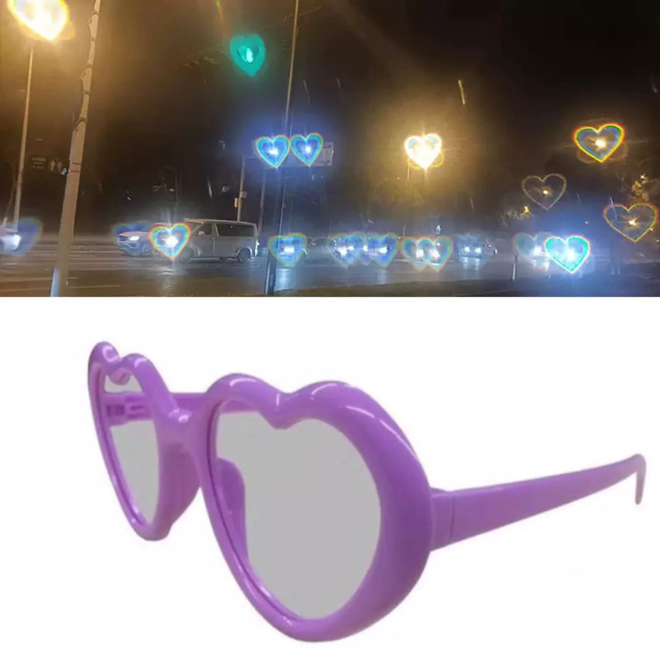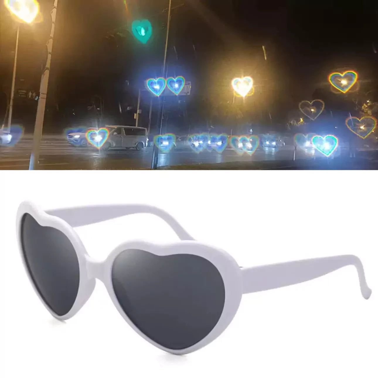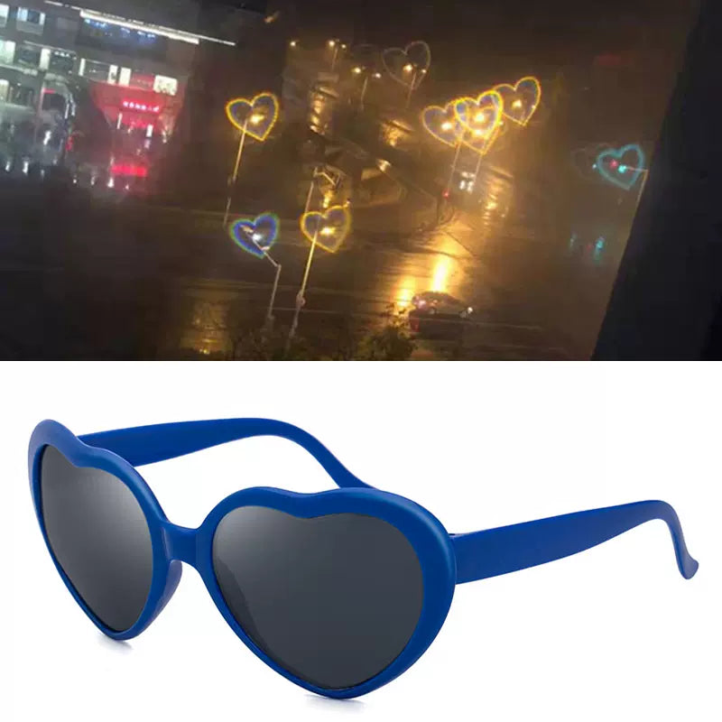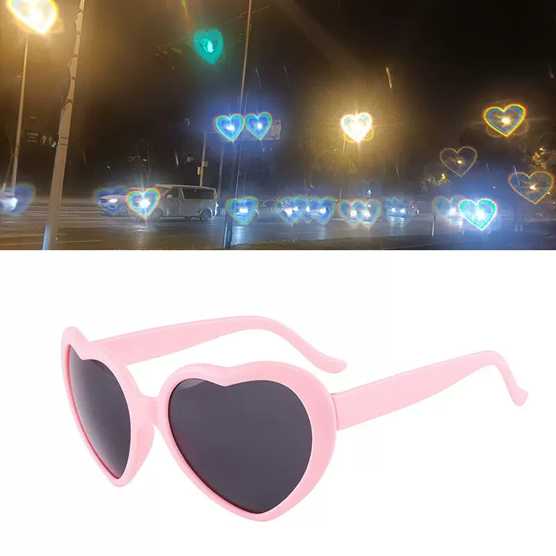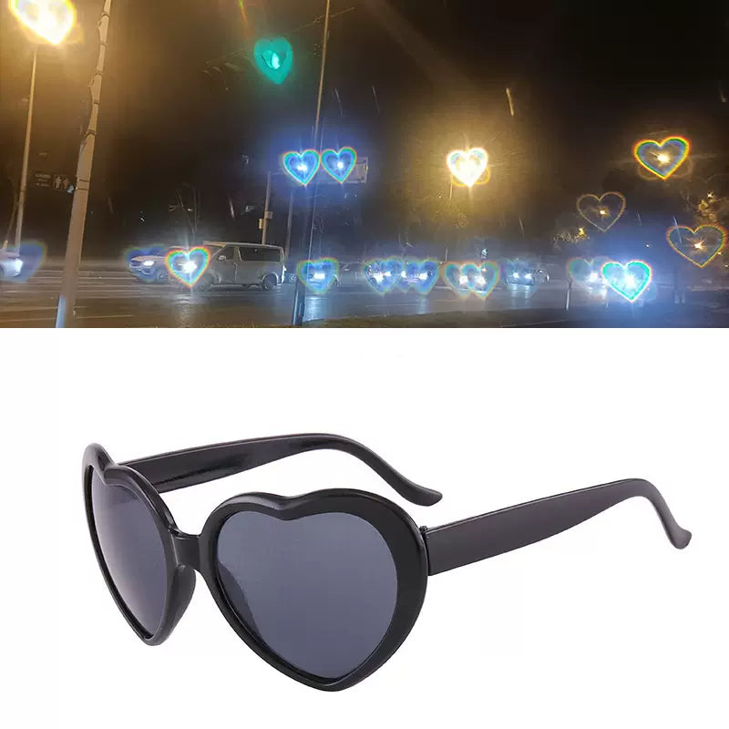 Add a touch of romance to your view. Turn ordinary lights into heart-shaped love with these special effects sunglasses!