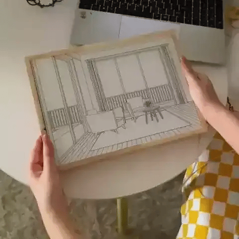 Prepare to be astounded by the artistry concealed within this unassuming painting frame. Delicately etched single-lined art adorns the surface, hinting at the scenes that lie beneath. Delight in the joy of art that remains hidden until you decide to illuminate it, creating an air of intrigue and beauty in your surroundings.