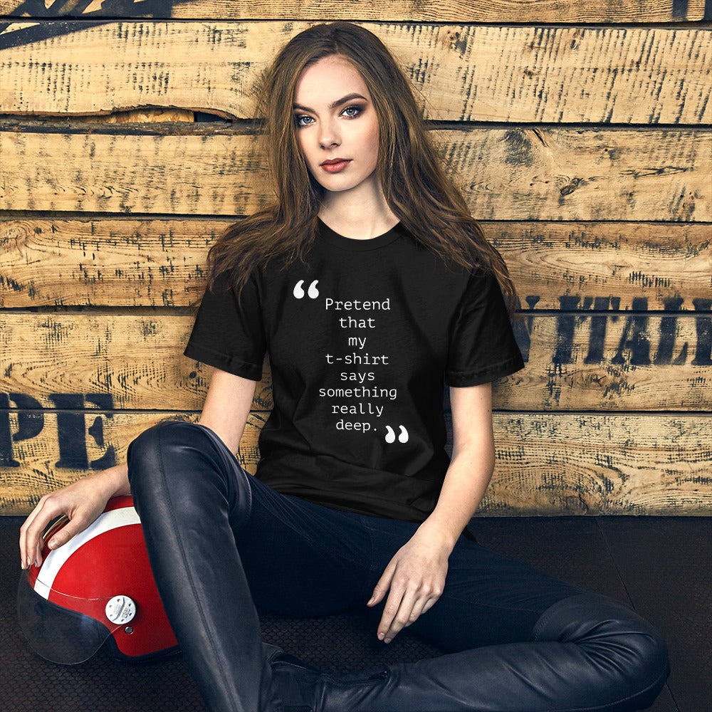 The perfect ice breaker for every occasion. Let people show you their improv skills, show off your deep spiritual self, and seem deep and mysterious to the people far away while letting your true self be seen by people close by, all in one go with this comfortable t-shirt.